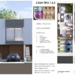 Viviendas de dos pisos: 128,09 m² de construcción; 17.42 m² de estacionamiento y 22.92 m² de área verde. 3 dormitorios, patio posterior, sala, comedor y cocina integrados, 3 baños y 2 parqueaderos.