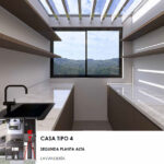 Este modelo ofrece mayor amplitud interior, terraza y amplia área verde. Es ideal para quienes valoran el espacio abierto y la comodidad en tres niveles. Es el modelo más amplio del proyecto.